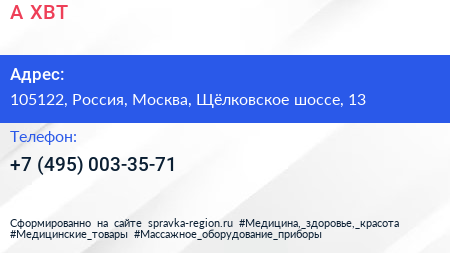 А-ХВТ по адресу 105122, Россия, Москва, Щёлковское шоссе, 13 в дальнейшем Организация, размещена в следующих категориях: