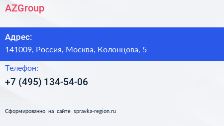 AZGroup по адресу 141009, Россия, Москва, Колонцова, 5 в дальнейшем Организация, размещена в следующих категориях: