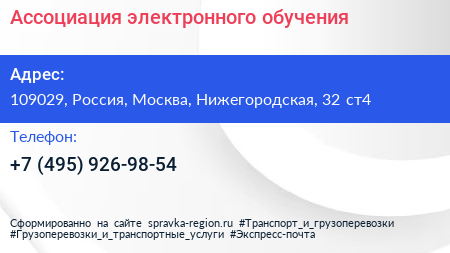 Ассоциация электронного обучения по адресу 109029, Россия, Москва, Нижегородская, 32 ст4 в дальнейшем Организация, размещена в следующих категориях: