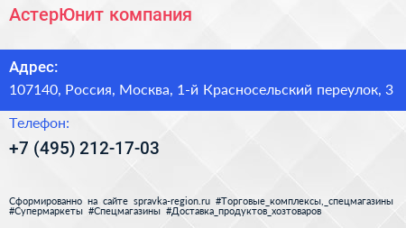 АстерЮнит, компания по адресу 107140, Россия, Москва, 1-й Красносельский переулок, 3 в дальнейшем Организация, размещена в следующих категориях: