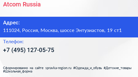 Atcom Russia по адресу 111024, Россия, Москва, шоссе Энтузиастов, 19 ст1 в дальнейшем Организация, размещена в следующих категориях: