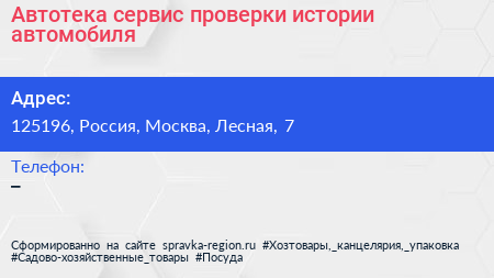 Автотека, сервис проверки истории автомобиля по адресу 125196, Россия, Москва, Лесная, 7 в дальнейшем Организация, размещена в следующих категориях: