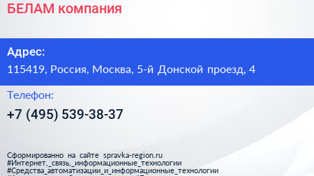 БЕЛАМ, компания по адресу 115419, Россия, Москва, 5-й Донской проезд, 4 в дальнейшем Организация, размещена в следующих категориях: