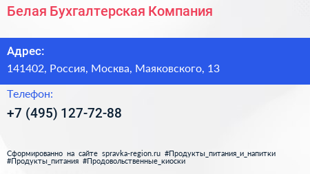 Белая Бухгалтерская Компания по адресу 141402, Россия, Москва, Маяковского, 13 в дальнейшем Организация, размещена в следующих категориях: