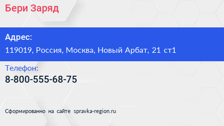 Бери Заряд! по адресу 119019, Россия, Москва, Новый Арбат, 21 ст1 в дальнейшем Организация, размещена в следующих категориях:
