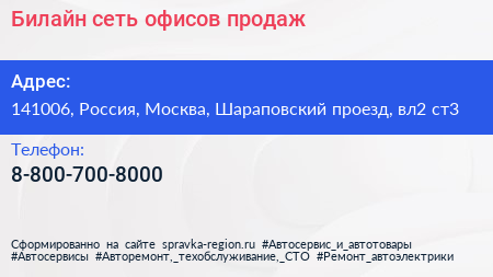 Билайн, сеть офисов продаж по адресу 141006, Россия, Москва, Шараповский проезд, вл2 ст3 в дальнейшем Организация, размещена в следующих категориях: