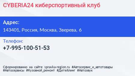 CYBERIA24, киберспортивный клуб по адресу 143401, Россия, Москва, Зверева, 6 в дальнейшем Организация, размещена в следующих категориях: