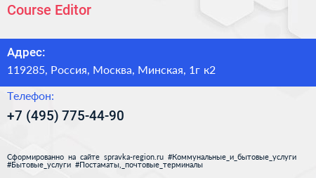 Course Editor по адресу 119285, Россия, Москва, Минская, 1г к2 в дальнейшем Организация, размещена в следующих категориях:
