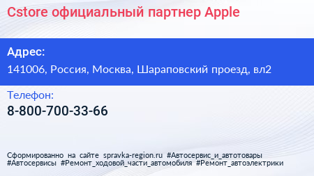 Cstore, официальный партнер Apple по адресу 141006, Россия, Москва, Шараповский проезд, вл2 в дальнейшем Организация, размещена в следующих категориях: