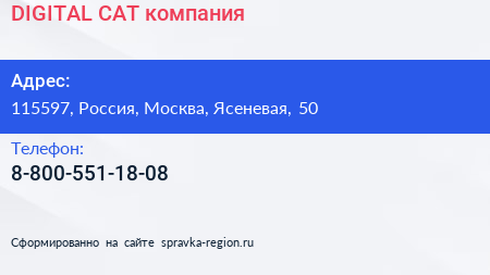 DIGITAL-CAT, компания по адресу 115597, Россия, Москва, Ясеневая, 50 в дальнейшем Организация, размещена в следующих категориях: