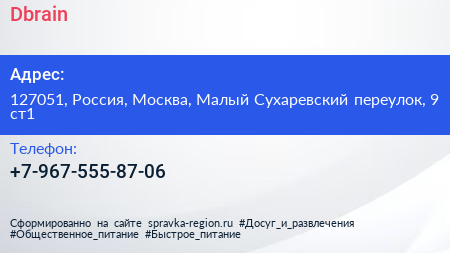Dbrain по адресу 127051, Россия, Москва, Малый Сухаревский переулок, 9 ст1 в дальнейшем Организация, размещена в следующих категориях:
