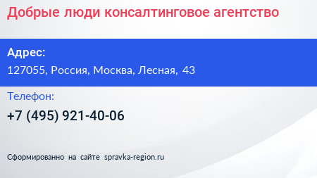 Добрые люди, консалтинговое агентство по адресу 127055, Россия, Москва, Лесная, 43 в дальнейшем Организация, размещена в следующих категориях: