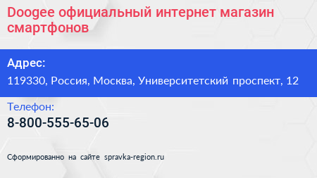 Doogee, официальный интернет-магазин смартфонов по адресу 119330, Россия, Москва, Университетский проспект, 12 в дальнейшем Организация, размещена в следующих категориях: