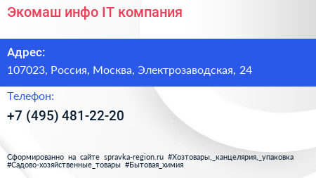 Экомаш инфо, IT-компания по адресу 107023, Россия, Москва, Электрозаводская, 24 в дальнейшем Организация, размещена в следующих категориях: