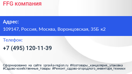 FFG, компания по адресу 109147, Россия, Москва, Воронцовская, 35Б к2 в дальнейшем Организация, размещена в следующих категориях: