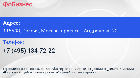 ФоБизнес по адресу 115533, Россия, Москва, проспект Андропова, 22 в дальнейшем Организация, размещена в следующих категориях: