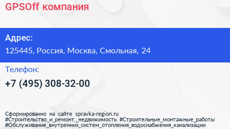 GPSOff, компания по адресу 125445, Россия, Москва, Смольная, 24 в дальнейшем Организация, размещена в следующих категориях: