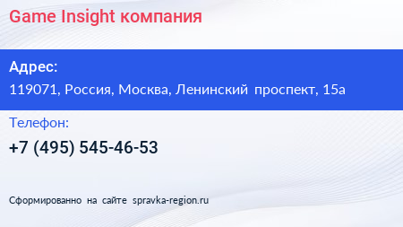 Game Insight, компания по адресу 119071, Россия, Москва, Ленинский проспект, 15а в дальнейшем Организация, размещена в следующих категориях: