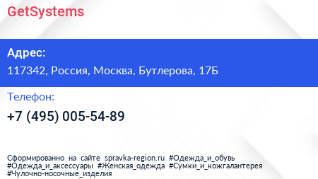 GetSystems по адресу 117342, Россия, Москва, Бутлерова, 17Б в дальнейшем Организация, размещена в следующих категориях: