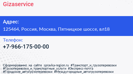 Gizaservice по адресу 125464, Россия, Москва, Пятницкое шоссе, вл18 в дальнейшем Организация, размещена в следующих категориях: