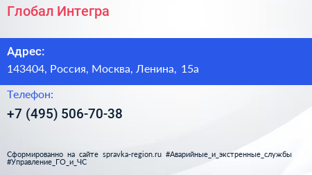 Глобал Интегра по адресу 143404, Россия, Москва, Ленина, 15а в дальнейшем Организация, размещена в следующих категориях: