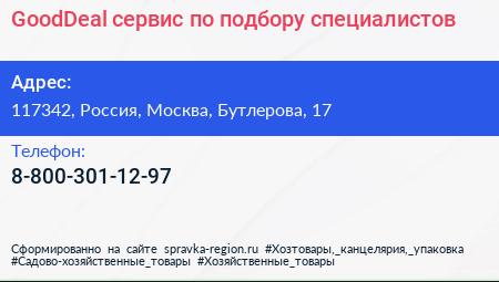 GoodDeal, сервис по подбору специалистов по адресу 117342, Россия, Москва, Бутлерова, 17 в дальнейшем Организация, размещена в следующих категориях: