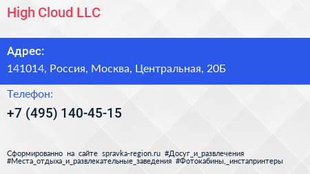 High Cloud LLC по адресу 141014, Россия, Москва, Центральная, 20Б в дальнейшем Организация, размещена в следующих категориях: