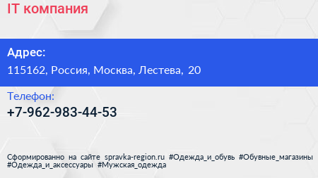 IT-компания по адресу 115162, Россия, Москва, Лестева, 20 в дальнейшем Организация, размещена в следующих категориях:
