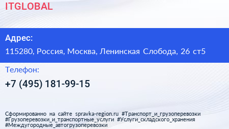 ITGLOBAL по адресу 115280, Россия, Москва, Ленинская Слобода, 26 ст5 в дальнейшем Организация, размещена в следующих категориях: