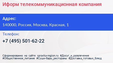 Иформ, телекоммуникационная компания по адресу 140000, Россия, Москва, Красная, 1 в дальнейшем Организация, размещена в следующих категориях: