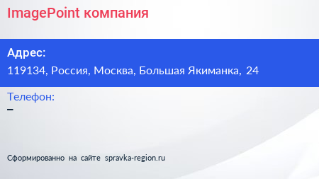 ImagePoint, компания по адресу 119134, Россия, Москва, Большая Якиманка, 24 в дальнейшем Организация, размещена в следующих категориях:
