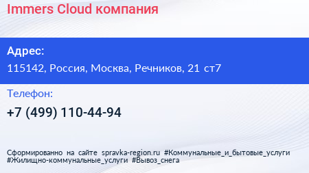 Immers.Cloud, компания по адресу 115142, Россия, Москва, Речников, 21 ст7 в дальнейшем Организация, размещена в следующих категориях: