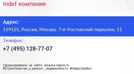 Indef, компания по адресу 119121, Россия, Москва, 7-й Ростовский переулок, 11 в дальнейшем Организация, размещена в следующих категориях: