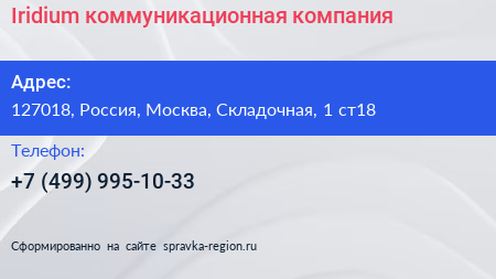 Iridium, коммуникационная компания по адресу 127018, Россия, Москва, Складочная, 1 ст18 в дальнейшем Организация, размещена в следующих категориях: