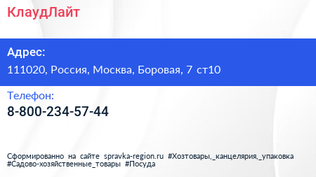 КлаудЛайт по адресу 111020, Россия, Москва, Боровая, 7 ст10 в дальнейшем Организация, размещена в следующих категориях: