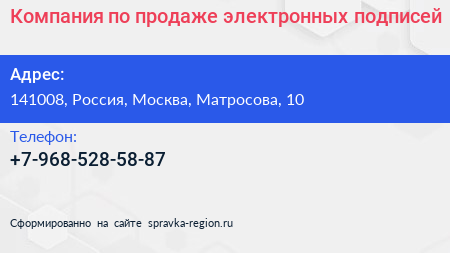 Компания по продаже электронных подписей по адресу 141008, Россия, Москва, Матросова, 10 в дальнейшем Организация, размещена в следующих категориях: