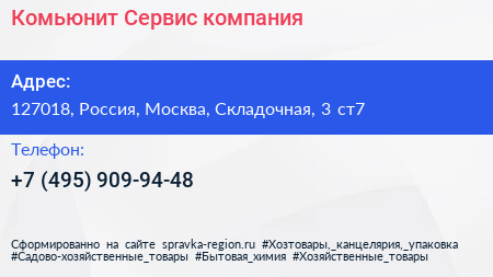 Комьюнит Сервис, компания по адресу 127018, Россия, Москва, Складочная, 3 ст7 в дальнейшем Организация, размещена в следующих категориях: