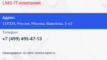 LMG, IT-компания по адресу 119334, Россия, Москва, Вавилова, 5 к3 в дальнейшем Организация, размещена в следующих категориях: