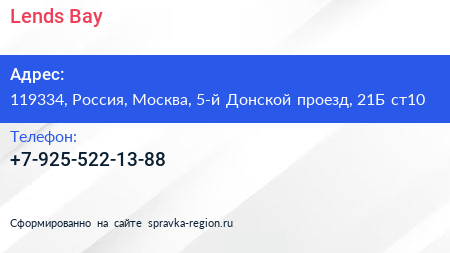 Lends Bay по адресу 119334, Россия, Москва, 5-й Донской проезд, 21Б ст10 в дальнейшем Организация, размещена в следующих категориях: