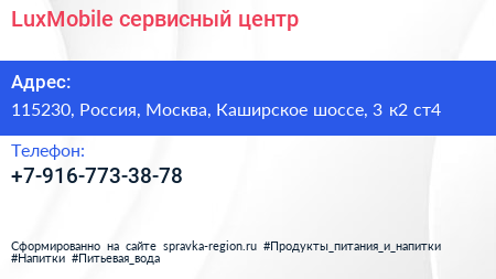 LuxMobile, сервисный центр по адресу 115230, Россия, Москва, Каширское шоссе, 3 к2 ст4 в дальнейшем Организация, размещена в следующих категориях: