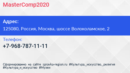 MasterComp2020 по адресу 125080, Россия, Москва, шоссе Волоколамское, 2 в дальнейшем Организация, размещена в следующих категориях: