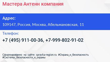 Мастера Антенн, компания по адресу 109147, Россия, Москва, Абельмановская, 11 в дальнейшем Организация, размещена в следующих категориях: