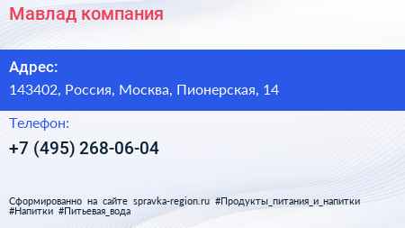 Мавлад, компания по адресу 143402, Россия, Москва, Пионерская, 14 в дальнейшем Организация, размещена в следующих категориях: