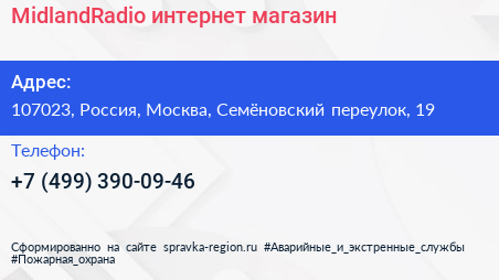 MidlandRadio, интернет-магазин по адресу 107023, Россия, Москва, Семёновский переулок, 19 в дальнейшем Организация, размещена в следующих категориях: