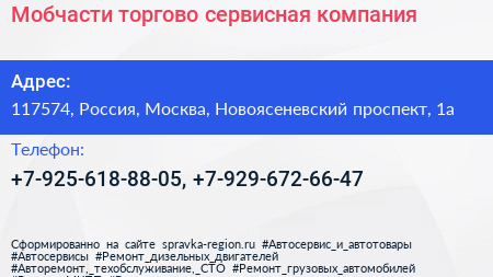 Мобчасти, торгово-сервисная компания по адресу 117574, Россия, Москва, Новоясеневский проспект, 1а в дальнейшем Организация, размещена в следующих категориях: