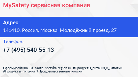 MySafety, сервисная компания по адресу 141410, Россия, Москва, Молодёжный проезд, 27 в дальнейшем Организация, размещена в следующих категориях: