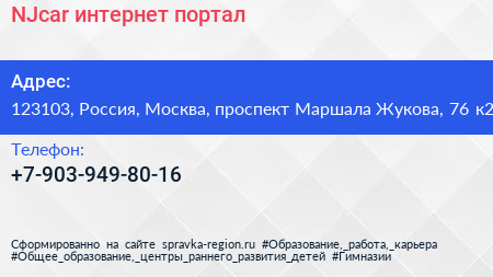 NJcar, интернет-портал по адресу 123103, Россия, Москва, проспект Маршала Жукова, 76 к2 в дальнейшем Организация, размещена в следующих категориях: