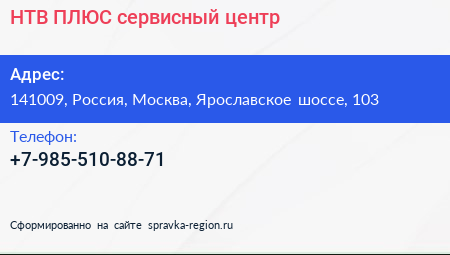 НТВ-ПЛЮС, сервисный центр по адресу 141009, Россия, Москва, Ярославское шоссе, 103 в дальнейшем Организация, размещена в следующих категориях: