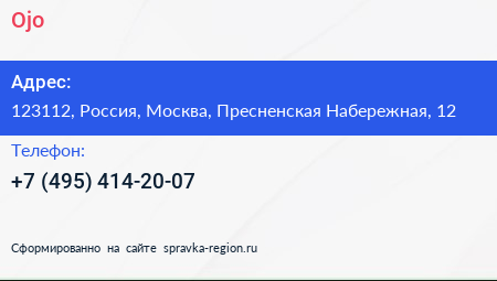 Ojo по адресу 123112, Россия, Москва, Пресненская Набережная, 12 в дальнейшем Организация, размещена в следующих категориях: