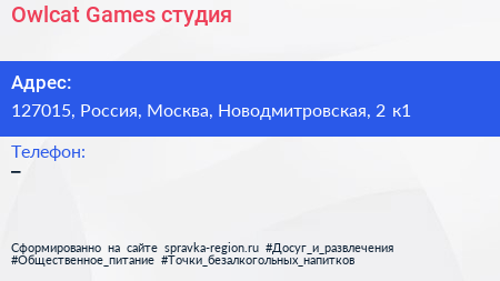 Owlcat Games, студия по адресу 127015, Россия, Москва, Новодмитровская, 2 к1 в дальнейшем Организация, размещена в следующих категориях:
